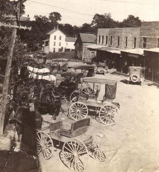 street from J J Putman store. Horse drawn