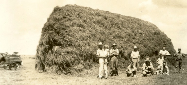 Back of photo is labelled "Making Hay", ca. 1950