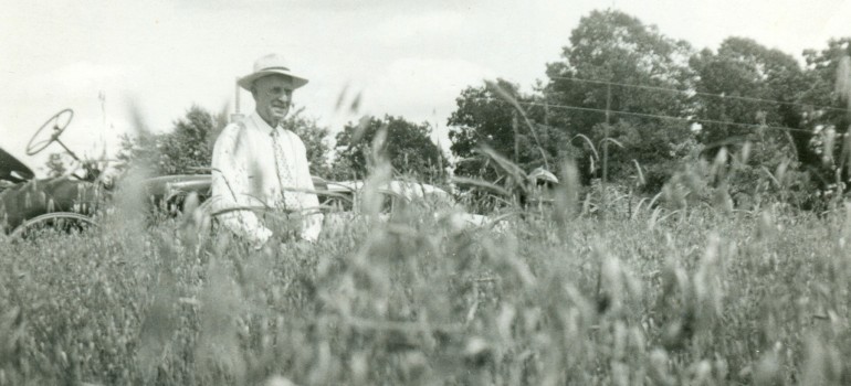 Back of photo is labelled "Dad's South Field", ca. 1950