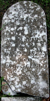 Bobby Putman mapped the cemetary in the 70's and he listed William Spain 1872 age 18 years (only date). This could have been a brother-in-law of Mrs. M. E. Spain's who also died in 1872. The grave stone doesn't exist anywhere.