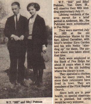 Newspaper Clipping of Billy and Sibyl Putman