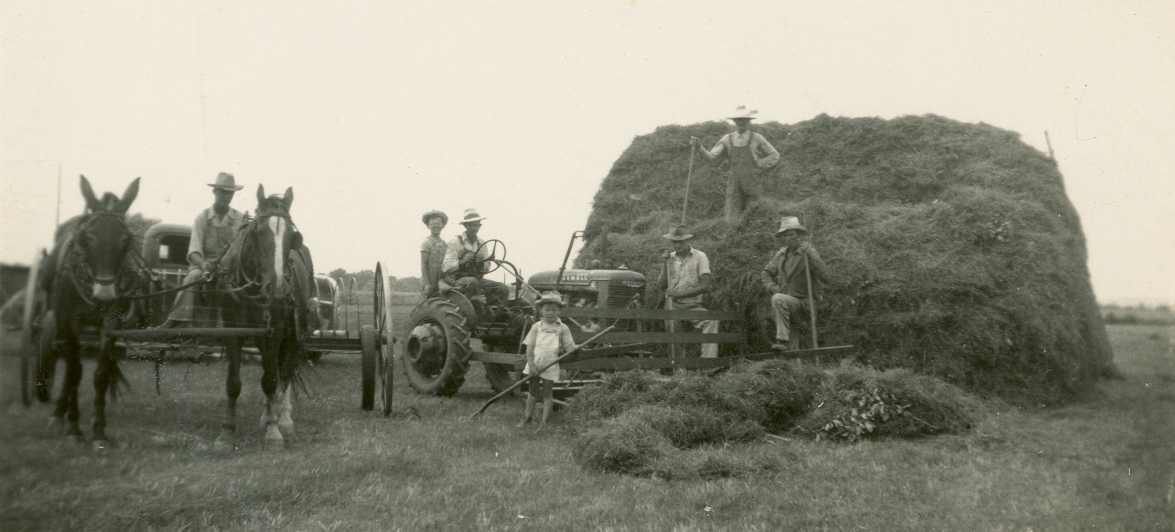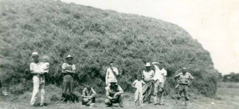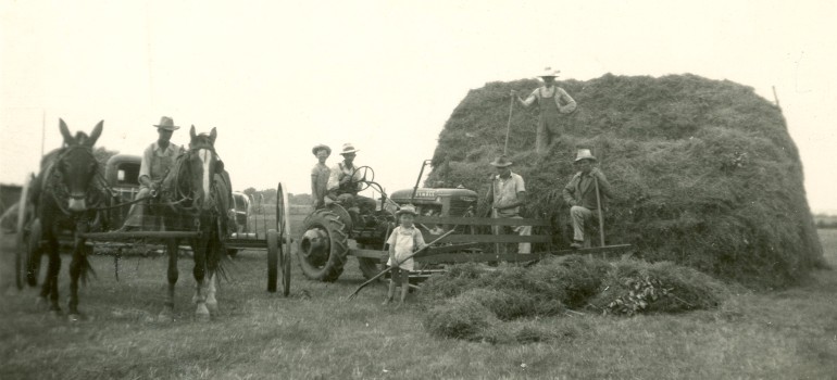 Back of photo is labelled "Making Hay", ca. 1950