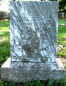 Charles Robert Putman had an interview with Mrs. Wm. G. Godley about 1972 in which she gave him the following information. Alvis Sellers Puckett was buried in the Putman Cemetery beside his first wife. His grave is the long slab without a name beside Josephine which reads "Josephine, wife of A. S. Puckett."